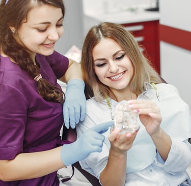 Invisible Appearance: Clear aligners are made from transparent plastic, making them almost invisible. This means you can straighten your teeth without anyone noticing, which is a big plus for many adults.